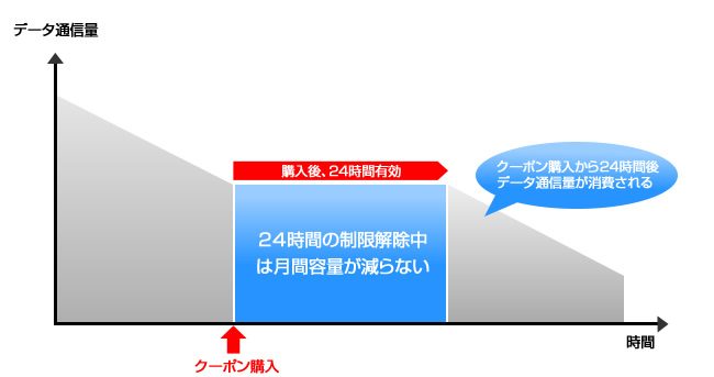 ・速度制限されていない状態で、誤って「24時間速度制限解除クーポン」を購入された場合でも請求が発生しますのでご注意ください。 |