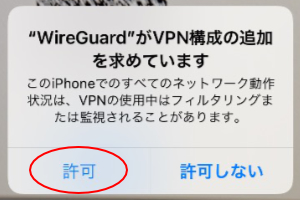 6.「許可」をタップして、iPhoneのパスコードを入力します。。