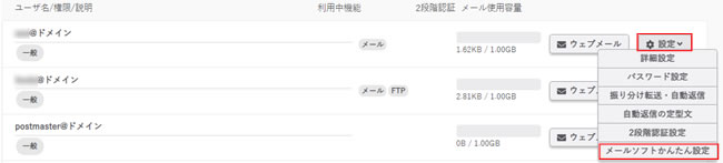 3.『設定』をクリックし、『メールソフトかんたん設定』をクリックします。