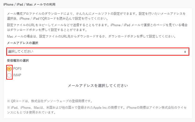 (iPhone iPad)QRコードもしくは、構成ファイルのダウンロードURLを、メールの利用者に伝えて設定する場合