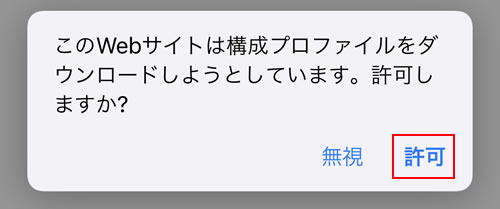 2.[構成プロファイルのダウンロード]の承認画面がでますので、『許可』をタップします。
