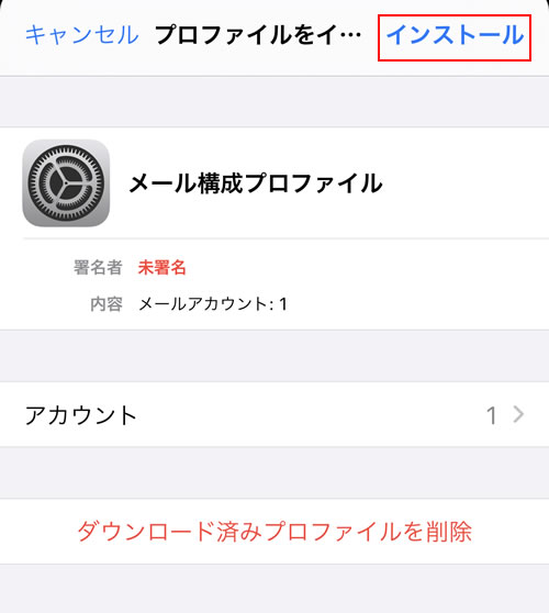 ※POP設定の場合、メール構成プロファイルを削除すると、メールに保存されたメールも消去されますのでご注意ください。