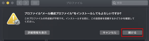 ・セキュリティ上、メール構成プロファイルには、メールのパスワードは記録されておりません。