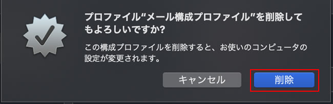 3.プロファイルを削除の画面が表示されます。『削除』をクリックします。