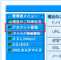 4.表示された管理画面の左側ボタン「アカウント管理」をクリックします。