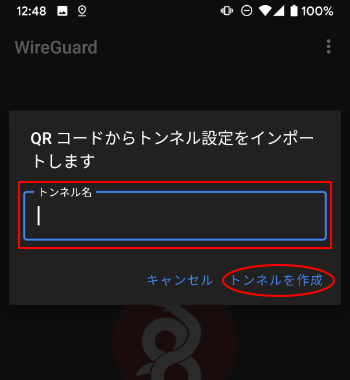 5.任意の名前を入力して「トンネルを作成」をタップします。