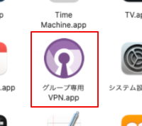 1.アプリケーションフォルダーにあるグループ専用VPNのアイコンをダブルクリックして起動します。