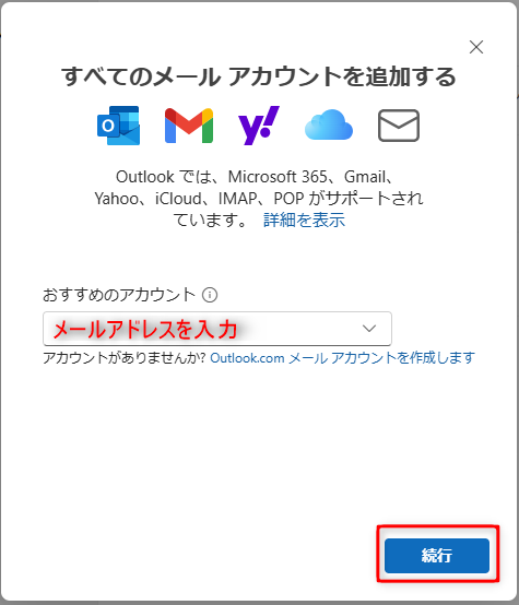 3.追加するメールアドレスを入力し、「続行」をクリックします。