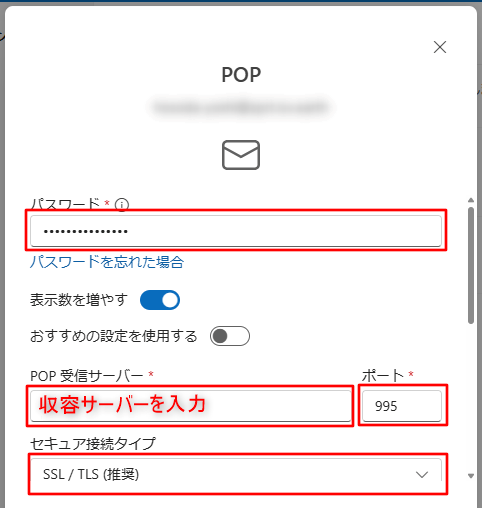 IMAP設定.IMAPで利用する場合は以下情報を設定してください。