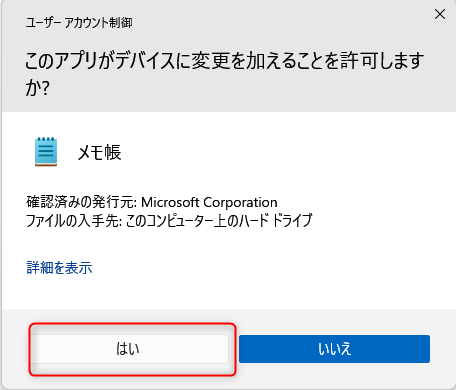 以下のメッセージが表示された場合は、「はい」を選択してください。