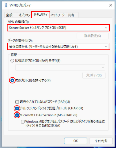Windows11で「マイIPソフトイーサ版」のMS-SSTP接続を行う場合は下記をご参照ください。