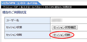マイメニューにログインし、「各コントロールパネルへ」→「セカイVPN」と進み、「セッション切断」のボタンをクリックしてセッションのクリアを行ってください。
