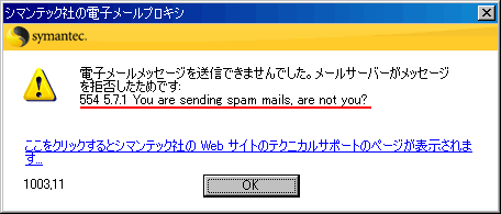 | '554 5.7.1 Number of outgoing mails exceeded limit.'.....エラー番号0x800CCC6F | |