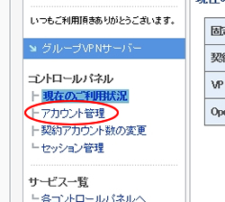 「各コントロールパネルへ」→「グループ専用VPN」へ進みます。
