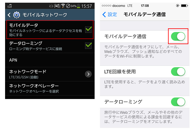 ご利用端末の設定で「モバイルデータ通信」が有効になっているかご確認ください。