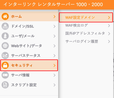 2.セキュリティから『WAF設定ドメイン』をクリックします。