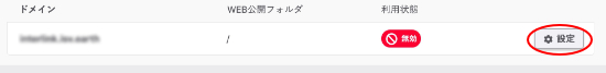 3.サーバに設定されているドメインが表示されます。WAFを設定したドメインの『設定』をクリックします。