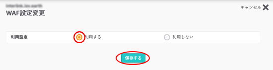 4.WAF設定変更が表示されます。利用する場合は『利用する』にチェックをいれ、『保存する』をクリックします。