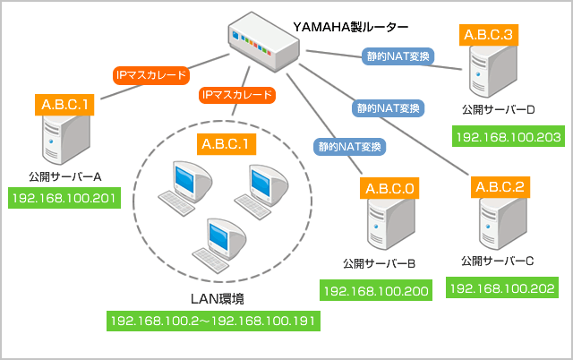 公開サーバーA: 192.168.100.201 (IPマスカレード用)