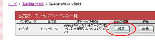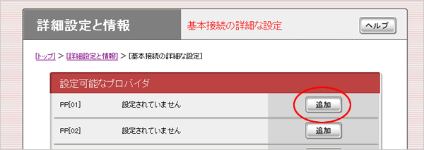 2.「詳細設定と情報」→「基本接続の詳細な設定」からPP[01]の列にある「追加」をクリックします。