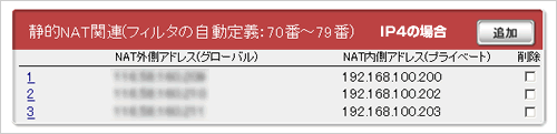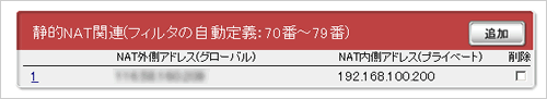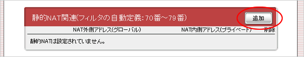 8.画面下にある「静的NAT関連」の「追加」をクリックします。