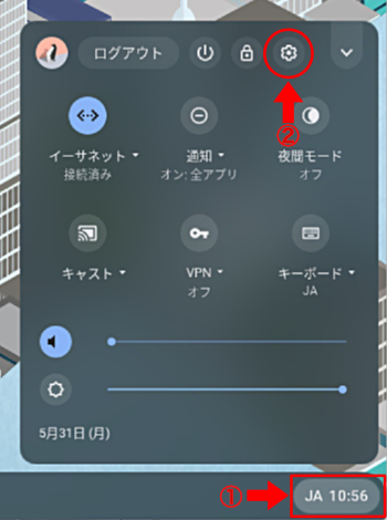 1.右下よりメニューを展開し、「歯車マーク」をクリックします。