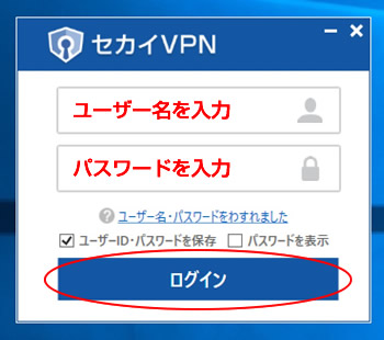 WindowsのセカイVPNアプリの使い方は下記をご参照ください。