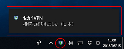4.接続に成功すると、以下の画面になり、タスクトレイのアイコンが緑色に変わります。