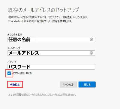 Thunderbirdの設定につきましては下記をご参照ください。