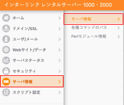 2.サーバ情報から『サーバ情報』をクリックします。