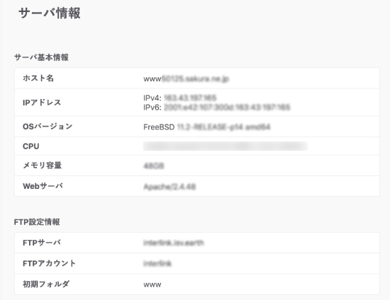 3.サーバ基本情報が表示されます。