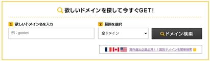 | ゴンベエのトップページの検索窓からご希望の文字列入力し、「ドメイン検索」をクリックしてください。 |