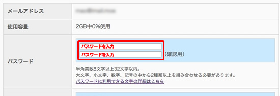 4.パスワードの項目に設定するパスワードを2回入力します。