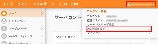 2段階認証の設定は、サーバコントロールパネルで行います。