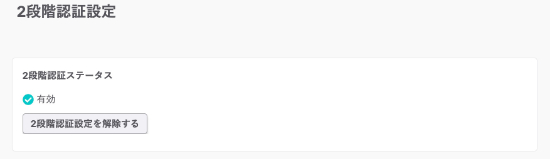 7.有効後に表示される「2段階認証ステータス」が有効になっていれば設定完了です。