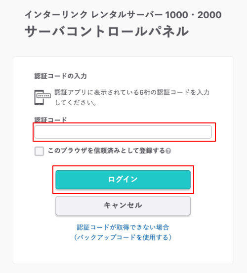 ※「レンタルサーバー1000・2000」のワンタイムパスワードを生成するTOTP認証アプリケーションがインストールされた端末が必要となります。