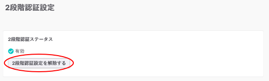 1.2段階認証設定の画面から「2段階認証設定を解除する」をクリックします。