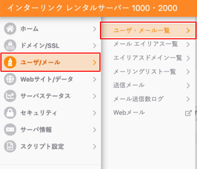1.ユーザ/メールから『ユーザ・メール一覧』をクリックします。