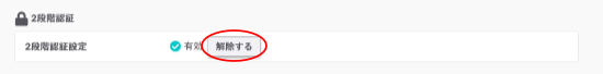 3.2段階認証設定画面が表示されます。「解除する」をクリックします。