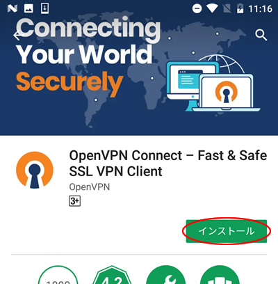 Google Play Storeにアクセス出来ない場合は、apkファイルでOpenVPNをインストールしてください。