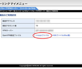 2.インストールが終わりましたら、OpenVPNの設定ファイルをダウンロードします。