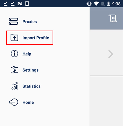 追加で設定ファイルをインストールする場合は、画面左上のメニューより「Import Profile」をタップしてください。