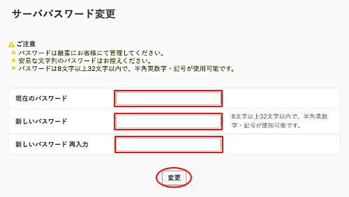 サーバパスワード 紛失・ご不明の場合は 「サーバパスワードの再発行」をご確認ください。 |