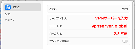 発行されたVPNサーバーを入力します。 |