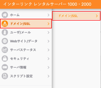 2.ドメイン/SSLから『ドメイン/SSL』をクリックします。