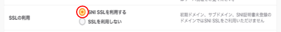 6.サーバー証明書をインストールすると、SSLの利用がSNI SSLを利用するに切り替わります。