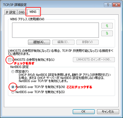 上記でも解決できない場合、NetBIOSの設定変更を行ってください。