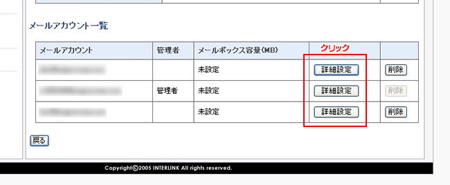 5.変更対象メールアドレスの詳細設定ボタンをクリック