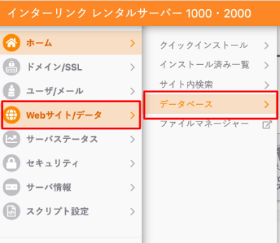 1.画面左側のメニューより、インポート先のデータベースを確認、クリックします。