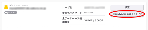 ・phpMyAdminで 各プランの目安値を越えるような容量の大きなデータベースやテーブルをエクスポートする場合は、処理に失敗する場合があります。